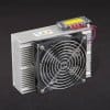 Features: Another two-module cooling system with the heat sink airflow directed in a more typical configuration (in the middle and out both ends). Like all of our coolers, it can be easily customized to meet your production requirements: special cold plates, smaller heat sinks, different operating voltages, lower power consumption, et cetera. Can be used for heating and cooling. This cooler is powered by 24 VDC and is compatible with all of our temperature controllers. Labeled wiring cables are included free of charge when purchasing interconnected standard products on the same order (thermoelectric cooling assembly or module, temperature controller and/or a power supply). The number of cables included (1-3 pairs) will depend on the number of components being interconnected.