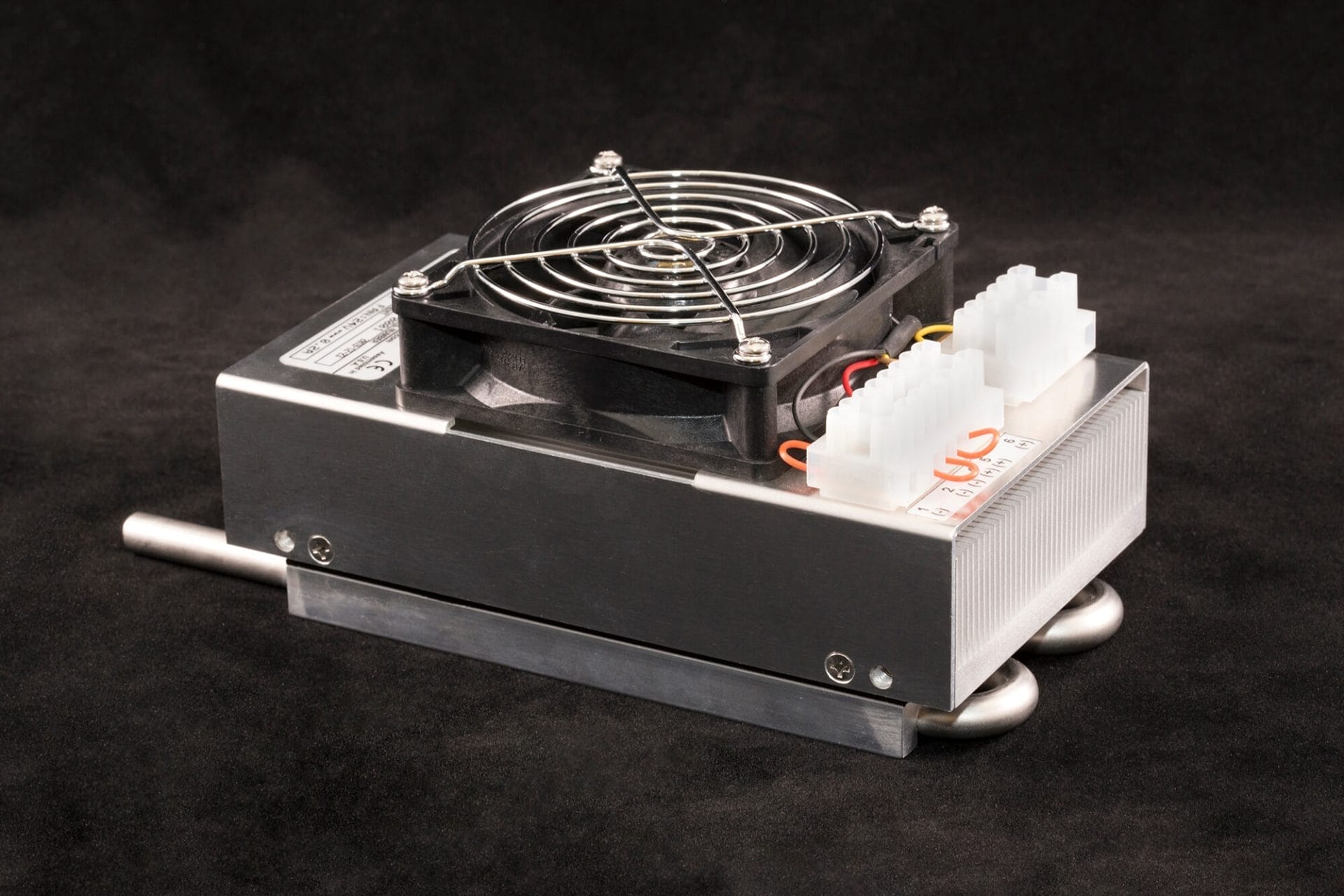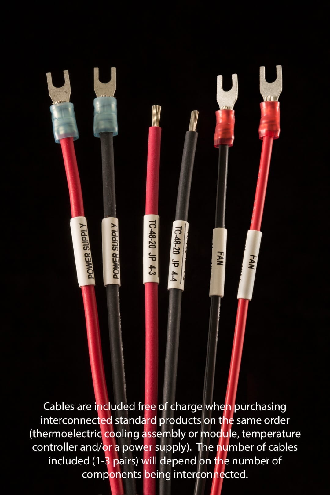 Features: A four-pass stainless steel liquid heat exchanger loop provides a very good thermal link between the fluid and four thermoelectric modules. Can be used for heating and cooling. Optional mixer coils can be added to improve performance at low flow rates or with viscous fluids. This cooler is powered by 24 VDC and is compatible with all of our temperature controllers. The fan speed is also controllable when used with TE Technology’s TC-720 series temperature controllers. Labeled wiring cables are included free of charge when purchasing interconnected standard products on the same order (thermoelectric cooling assembly or module, temperature controller and/or a power supply). The number of cables included (1-3 pairs) will depend on the number of components being interconnected.